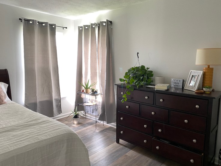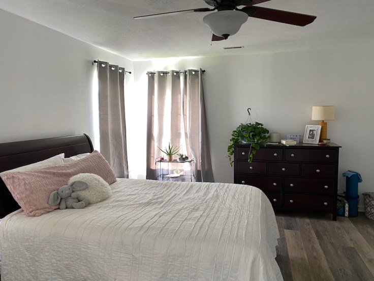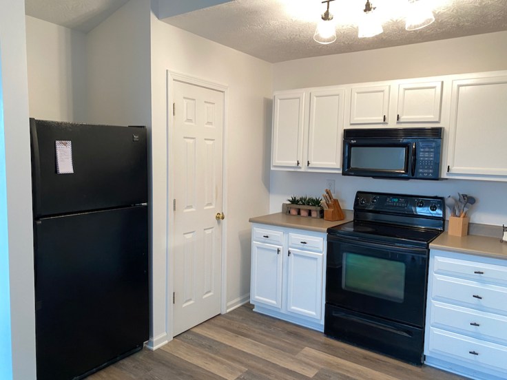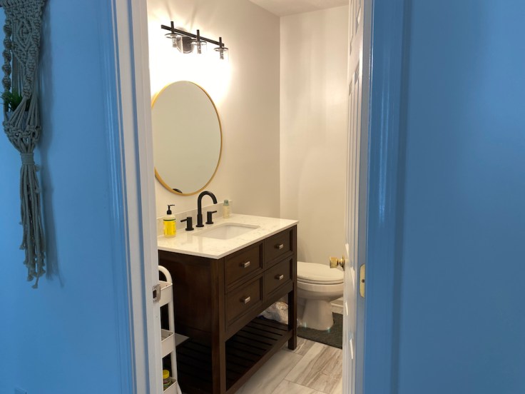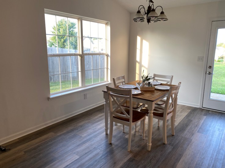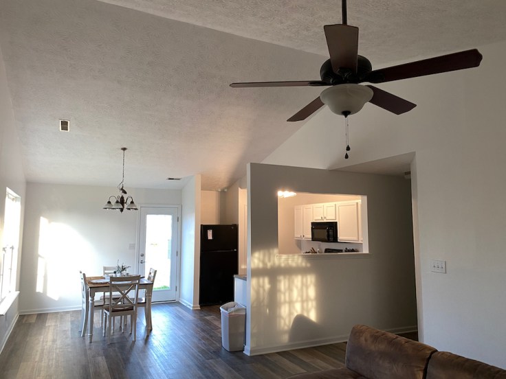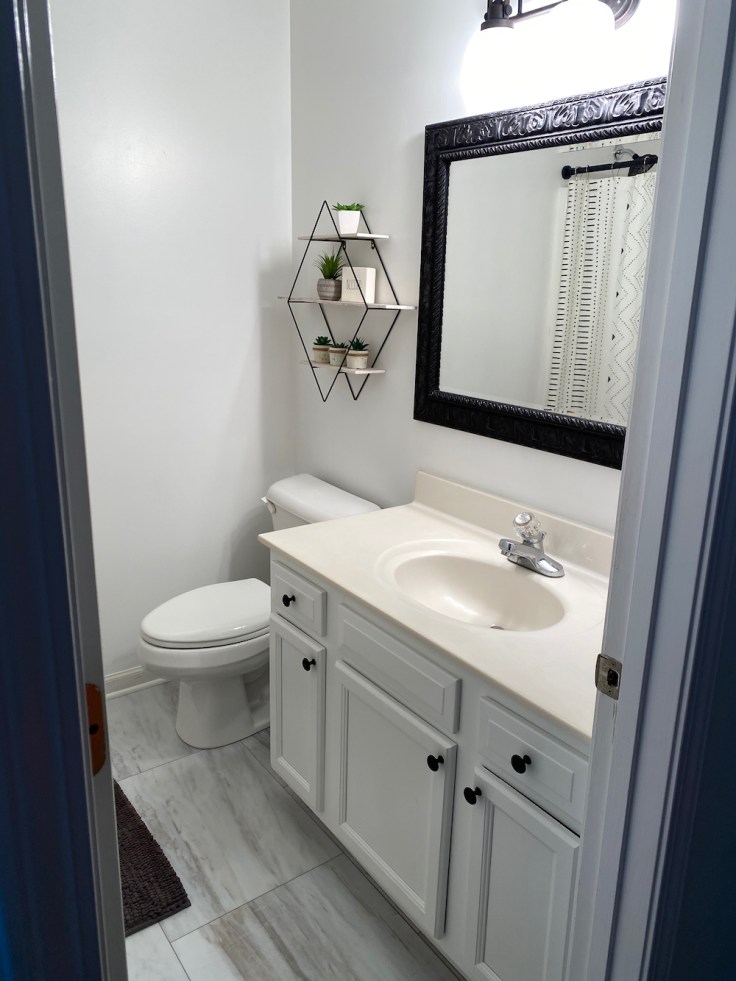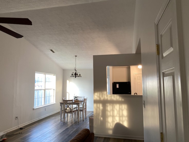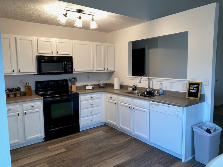 New LVT flooring throughout, paint floor to ceiling, remove the half wall, paint kitchen cabinets, new lights, and a lot of little things.